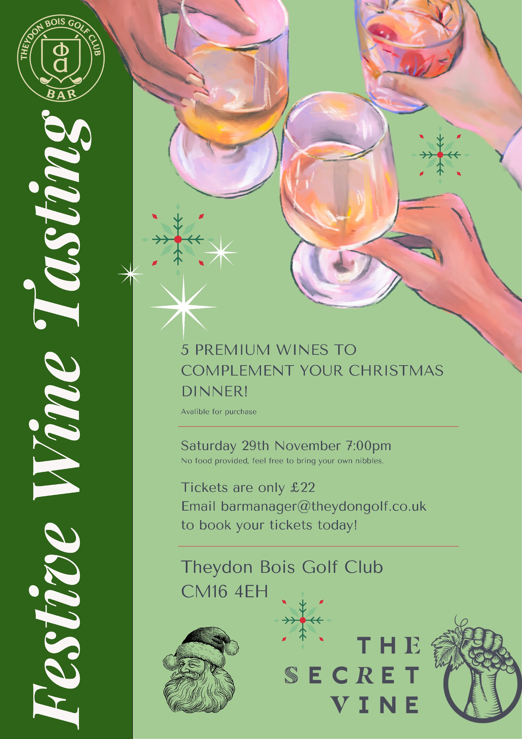 Chance to taste Christmas wines and purchase bottles post event.